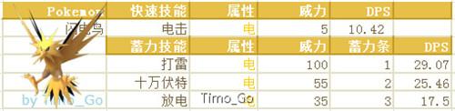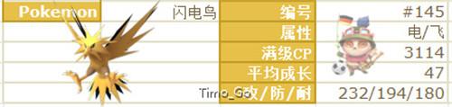 閃電鳥屬性主偏攻擊,CP略高與急凍鳥。然而電系在當前版本中真心有些弱勢,技能普遍傷害不高,再加上初代并沒有什么強力電系精靈,閃電鳥可以說也是個不錯的選擇。