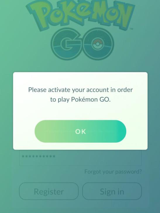 玩家登錄時可能會出現(xiàn)上圖的字樣,這是你的帳號沒有激活。全文翻譯是:請激活您的Pokemon go帳號。