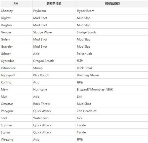 以上就是小編為各位玩家提供的Pokemon GO精靈寶可夢哪些精靈發生變化 技能調整表的全部內容啦!