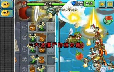 4、飛碟瓜有點飽和!這樣就能能一只固定僵尸,輕松過關。