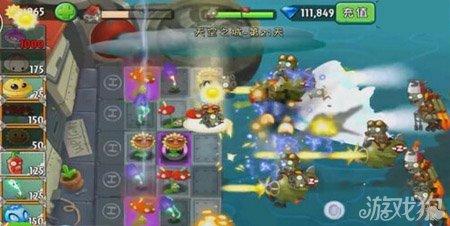 2、依舊還是種植產生陽光的向日葵,電離紅掌主要守住2、4行。出現飛機,建議用艦隊的主炮炸他!僵尸太多就用火爆辣椒!