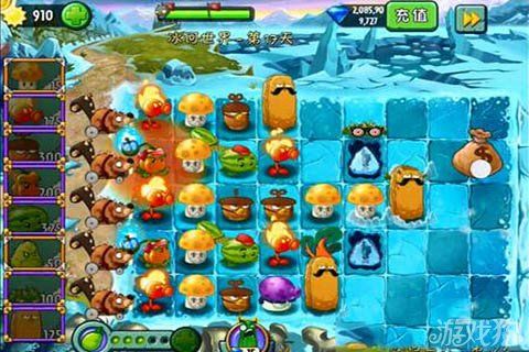 成型陣型差不多如上圖所示,里面需要有后排的火焰豌豆射手和辣椒投手來抵擋寒冰。