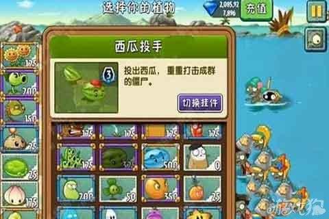 3、時間過到一半的時候,海水褪去!!這樣我們就很好攻擊了,這樣跟打路上的僵尸沒有區別,所以只要補充雙重射手火力和火龍草既可,覺得僵尸太多就補個西瓜投手!