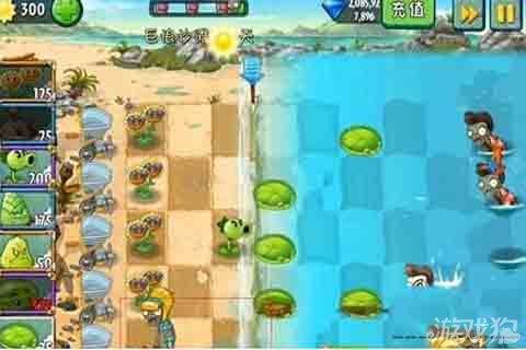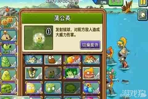 3、一定要看好海水漲潮和退潮!!現右邊的一定要種蓮葉,左邊的無所謂!接下來就是補充雙重射手火力和蒲公英(大家帶了其他的也可以種)既可,覺得僵尸太多就補個西瓜投手!
