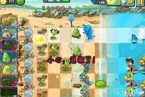 植物大戰僵尸2巨浪沙灘第四天三星攻略,這一關是大家最期待的漲潮退潮,是不是有新鮮的元素大家都很期待呢,那么這一關的要點是要在草線右邊先種蓮葉再種植物,否則直接被海水淹沒了,什么都沒了。所以一定要注意了。