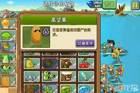 主要植物選擇:蓮葉、陽光蘑菇、高堅果、火龍草、菜問、雙重射手(都盡量高階一些,否則非常難打,小編盡量都選擇大家都有的植物)