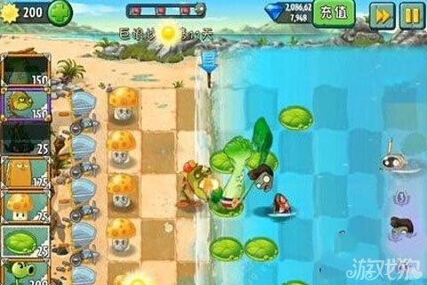 主要植物選擇:菜問、火龍茶、纏繞水草(高階能秒殺僵尸)、高堅果、陽光蘑菇、蓮葉、雙重射手(都盡量高階一些,否則非常難打,小編盡量都選擇大家都有的植物)