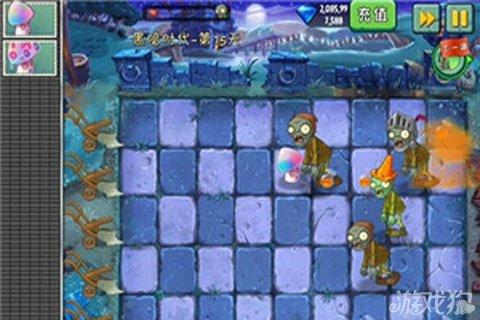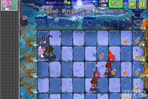 植物大戰僵尸2黑暗時代第十五關攻略,這里是傳送帶的玩法,還是優先放置蘑菇。盡量騎士僵尸吃魅惑菇。根據來的植物來放置植物,所以可以看見這里有魅惑菇,它可以讓僵尸來幫助我們攻擊其他的僵尸。