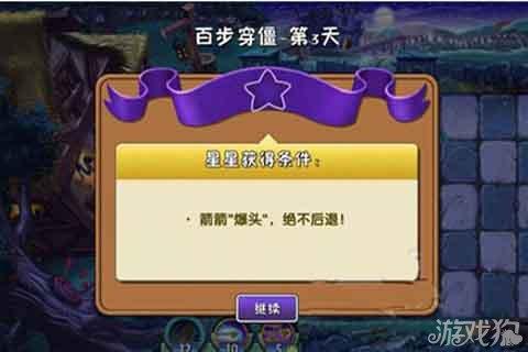 植物大戰僵尸2黑暗時代百步穿僵第三天攻略,難度比較大。中場會出來巨人和第二天一樣,最后一波也是巨人,區別嘛,第三天最后的是三階巨人,血量多成什么樣了。最后一個三階巨人扔的小鬼,我基本是打了兩發多重,然后就是第一種箭連射巨人,循環了好多次,巨人才被推倒。