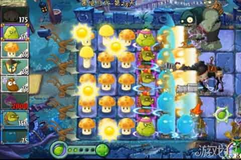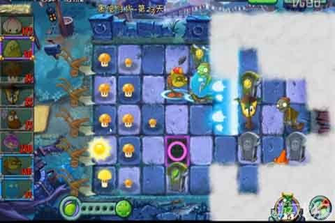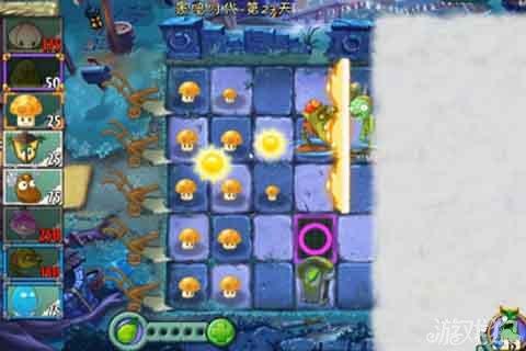 植物大戰僵尸2黑暗時代第27天圖文攻略,本關是有霧氣的,所以需要我們來利用路燈花照明,首先來種太陽菇這是毋庸置疑的,本關在開始的時候我們要發展自己的資源,差不多的時候就需要用路燈花幫助了。