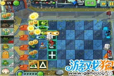 植物大戰僵尸2第八天前期的時候可以來一個規劃,在規劃的基礎上面來思考如何種植這些植物,藍色前排的格子建議用火龍草來阻擋敵人,剛剛開始的時候太陽肯定不夠那么就可以來埋伏地雷,對付前期幾個小僵尸,不影響整個的布局。后面永遠是太陽花的專屬地。