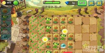 游戲開始:由于關卡限制一定要生產2500的陽光,所以一定要留空三排種植向日葵,而且不能在發(fā)霉的地盤上種植植物。