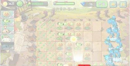 游戲中后期:這一關的最低配置還是使用雙重射手,這一次換一下位置,雙重射手種在最靠近發(fā)霉地盤的一列,前面的所有位置都種植向日葵,一有空就種植向日葵,碰到錘子僵尸的時候就用土豆雷和冰凍生菜解決它,這一關會出現兩波僵尸,記住用冰凍生菜的大招。(如果陽光不夠就使用給向日葵使用能量豆)