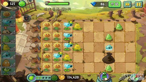 這一關小編選擇的植物,還是以控制為主,輸出還是以雪花豌豆和玉米投手為主。