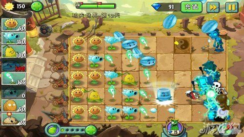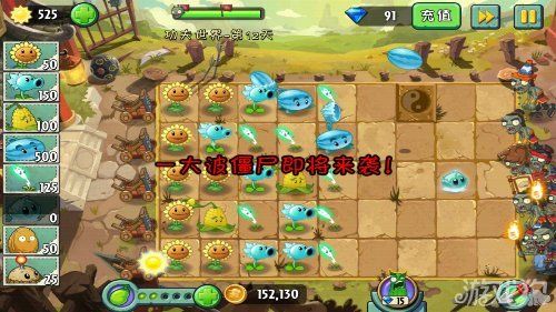 用了寒冰西瓜投手很輕松的就過關了,選擇的植物,還是以控制為主,輸出還是以冰西瓜、雪花豌豆和玉米投手為主。
