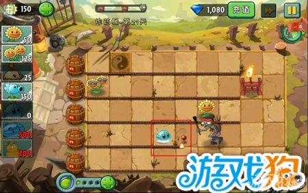 按照國際慣例,開始重向日葵。第一個僵尸出現用土豆地雷來炸掉。輸出主力依然是雪花豌豆,既能減速還有很高的傷害能力。這一關小編選擇的植……