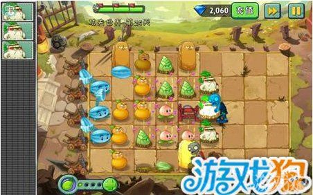 游戲的開始:因為這一關的攻擊植物有:冰西瓜、竹筍、火葫蘆。