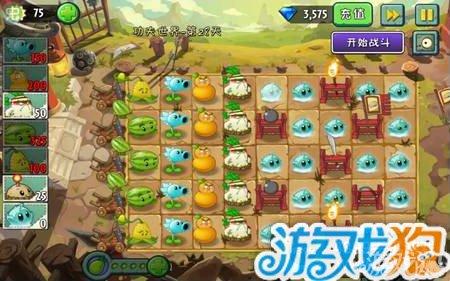 這一關(guān)一定要白蘿卜,而且這一關(guān)白蘿卜是過關(guān)的關(guān)鍵,西瓜投手種植2-3個(gè)即可,在第2或者第4排。選擇玉米投手有一定的人品幾率,如果能定住就最好了。寒冰射手、火葫蘆和白蘿卜每排一個(gè)。剩下的格子,冰凍生菜能放幾個(gè)就幾個(gè)。小技巧:開局可以免費(fèi)收集三顆能量豆,收完再開始。