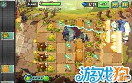 游戲的開始:前期用高堅果進行阻擋僵尸前進,再種植火龍草和閃電蘆葦。