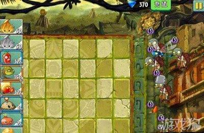 這關需要千萬小心火把僵尸。前期多種點向日葵后面才會打得輕松一些。首先種向日葵,前一個僵尸先用冰凍生菜凍住,爭取點時間種向日葵。炸藥……
