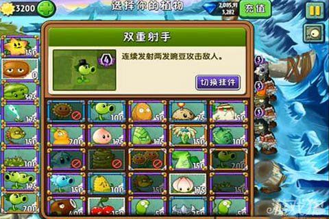 游戲在開始的時候已經送給了我們3200的陽光,所以我們本關不需要選擇陽光菇,前面的菜問和后面的卷心菜投手都是開局就有的,不過是冰凍住的。那么問題就來了,我們要如何把這三千二的陽光價值發揮到最大呢,購買什么樣的植物最好呢。