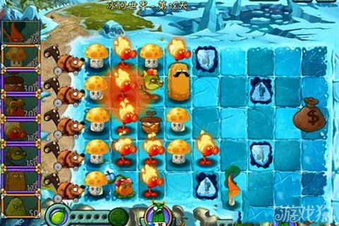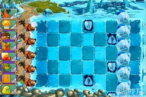開始的時候不要急著種遠程攻擊性植物,因為前面被冰凍著的僵尸如果過早的解凍會比較麻煩的,所以我們等第一個僵尸過了之后再種。