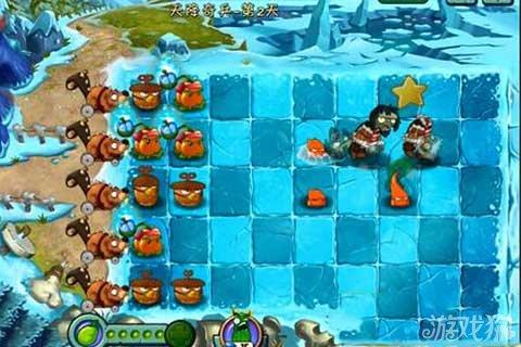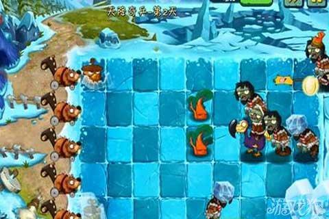 植物大戰僵尸2冰河世界第7天無損過關方法,本關看下面的地方你就知道了,多了一個被冰凍的僵尸,不過送的植物是火龍草,還是不錯的哦,那么……
