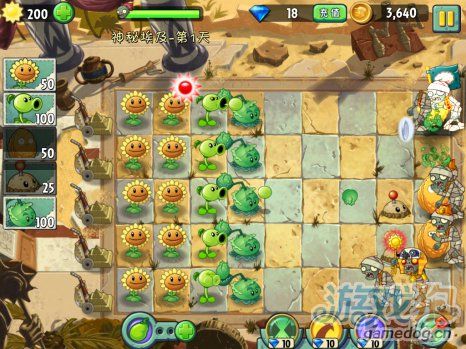 正常來說開始都是很簡單的,沒有特別難打的僵尸出現,開始的時候就盡量開始種太陽,有僵尸出來種個土豆雷就可以。權杖僵尸稍微厲害一點,種個豌豆射手來消滅它。