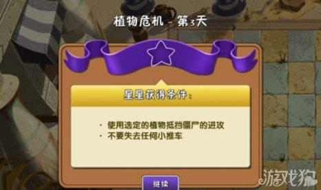 使用系統給定的植物來攻擊僵尸。開始種植向日葵,僵尸出來使用玉米射手來消滅僵尸。星星獲得條件:使用選定的植物抵擋僵尸的進攻。