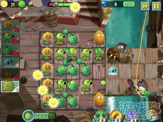 正常來說開始都是很簡單的,沒有特別難打的僵尸出現,開始的時候就盡量開始種太陽,有僵尸出來種個土豆雷就可以。權杖僵尸稍微厲害一點,種……