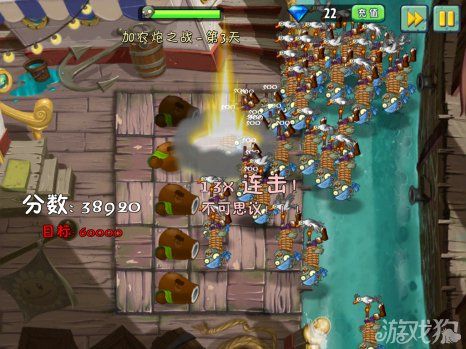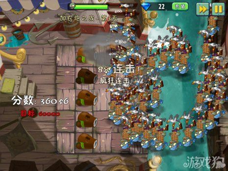 需要的是同時(shí)幾個(gè)手指來(lái)點(diǎn)擊大炮消滅僵尸,另外在海鷗僵尸轉(zhuǎn)向的時(shí)候發(fā)射,可以射死最多的海鷗僵尸。椰子加農(nóng)炮之戰(zhàn)第3天,達(dá)到60000分才可以過(guò)關(guān)。這關(guān)的難度還是有點(diǎn)大的,小編拿些圖片來(lái)說(shuō)一下。等僵尸轉(zhuǎn)到跟前在開(kāi)火能連擊比較多。