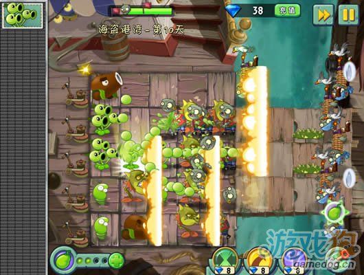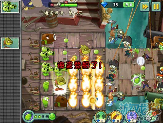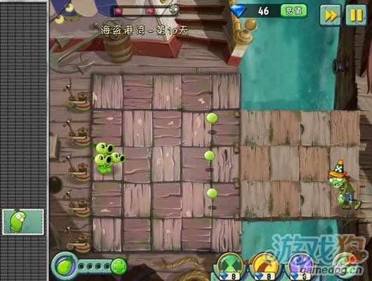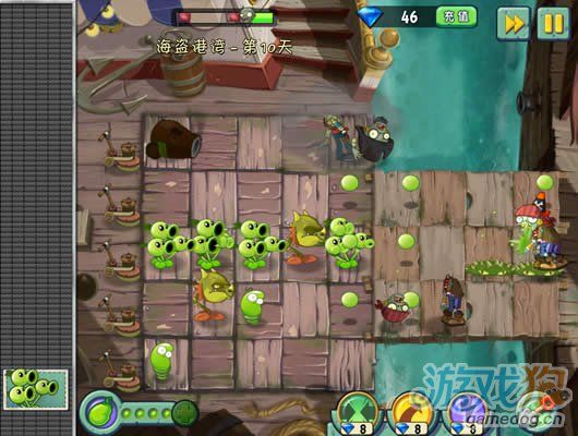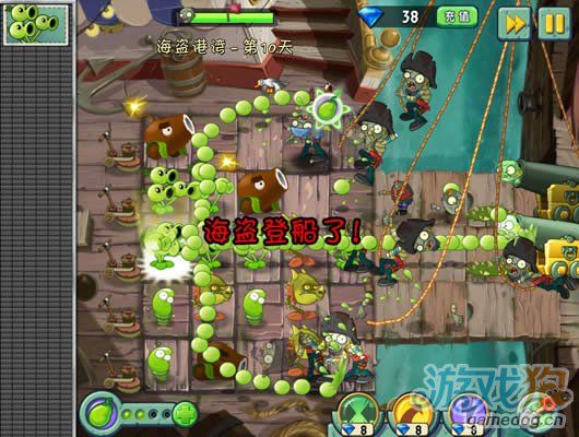 這一關和埃及關卡的傳送帶好像,就是放植物擺陣法。豌豆莢非常的厲害放在中間正好可以打三行。星星獲得條件:成功抵抗大波海盜僵尸入侵。蛟……