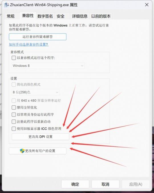 2. 右鍵屬性→兼容性→更改高DPI設(shè)置。