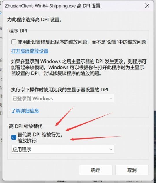 3. 勾選替代高DPI縮放行為,打開(kāi)游戲后你就會(huì)發(fā)現(xiàn)分辨率正常了。