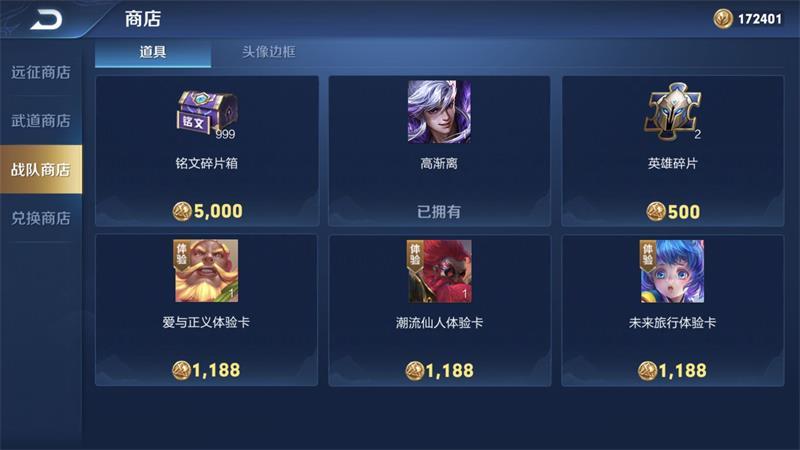 入口:戰(zhàn)隊 -> 展開 ->商店