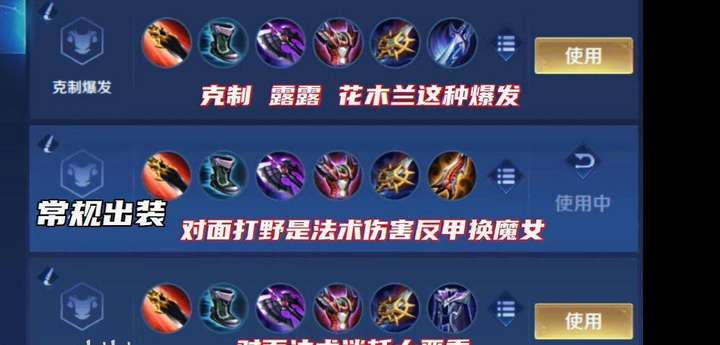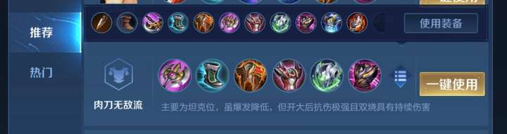 肉刀抗傷流:這套出裝給我們的收益是犧牲我們的輸出,提高我們的生存率,前期刷野速度加快。這套出裝相比于暴擊流的容錯率更高