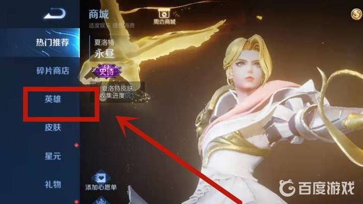 3、點擊英雄,找到商城英雄選項并點擊打開。