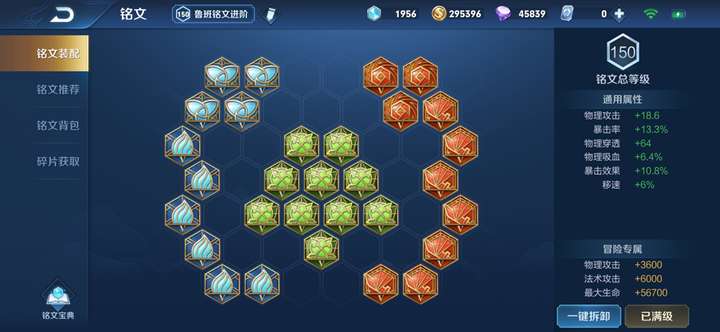 解析:這套銘文適合純暴擊輸出流的打法,10奪萃增加16%吸血效果,讓魯班即便不做吸血裝備依舊可以保證續航。