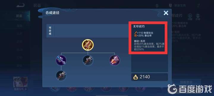 3、無盡戰刃:該裝備的被動效果更是強化了魯班七號的普通攻擊傷害,增加40%的暴擊傷害,所以說,閃電匕首搭配無盡戰刃,就可以輕松撐起魯班七號中期輸出傷害的能力。