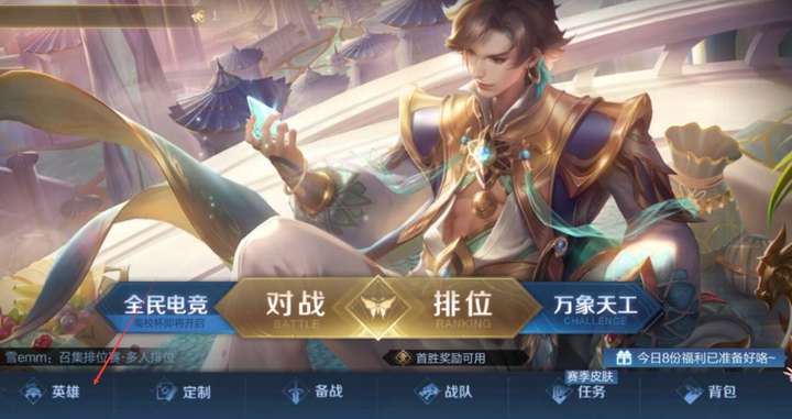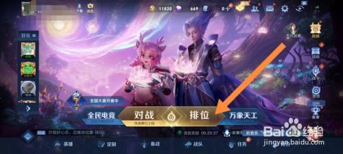 1 進(jìn)入王者榮耀游戲頁(yè)面,點(diǎn)擊下面的排位選項(xiàng)。