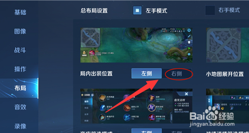 3 選擇局內出裝位置,點擊【右側】即可完成。