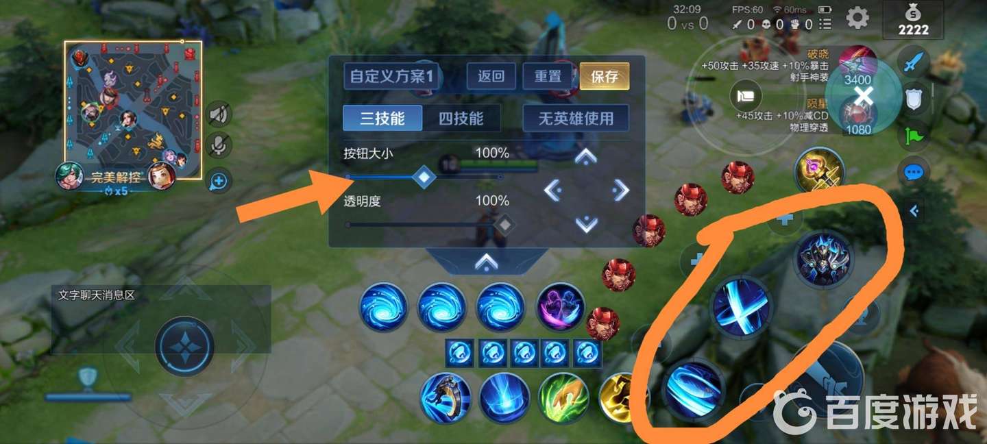 3.按鈕大小:選中需要的技能按鈕后,左右滑動“按鈕大小”,即可調節大小。