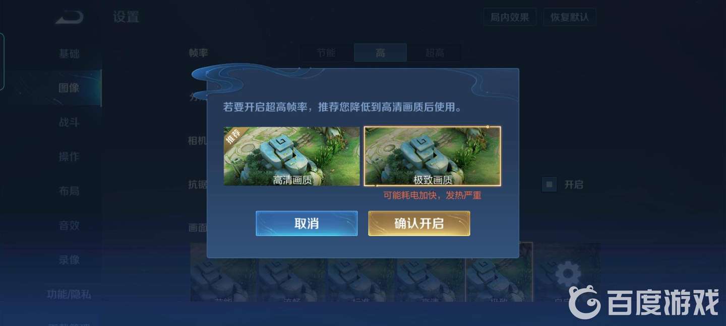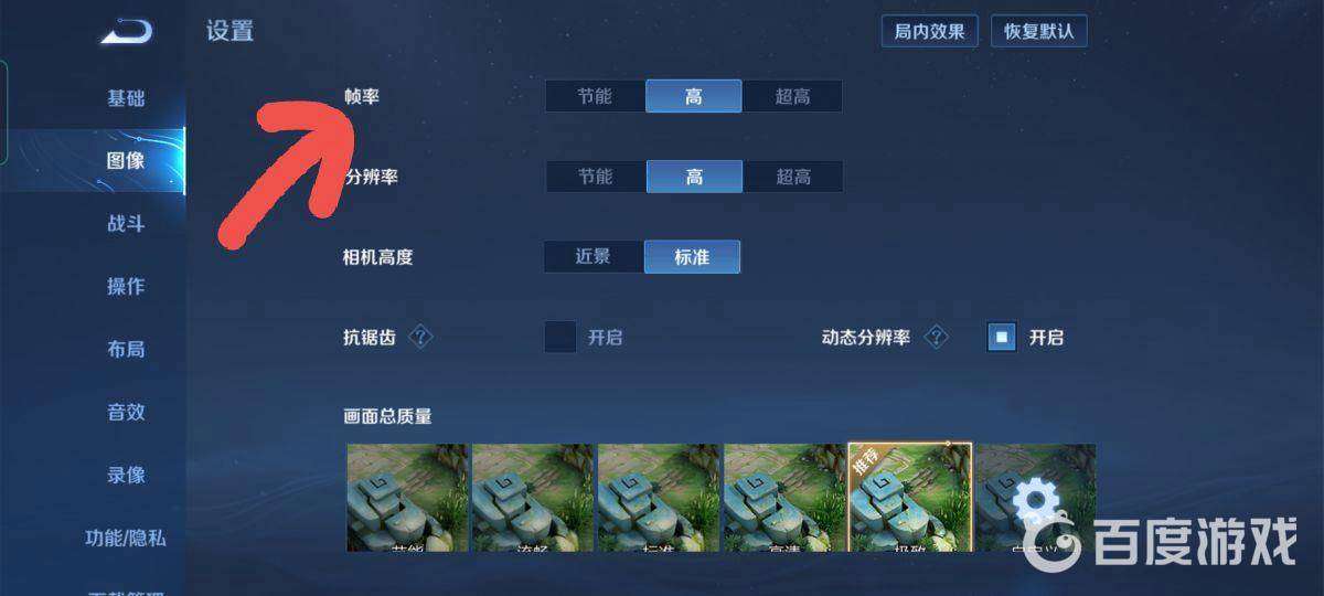 王者榮耀120幀設置方法是點擊右上角的設置按鈕,打開設置頁面,點擊左側的圖像功能,找到幀率,把節能設置成高,最高就是120幀率了。