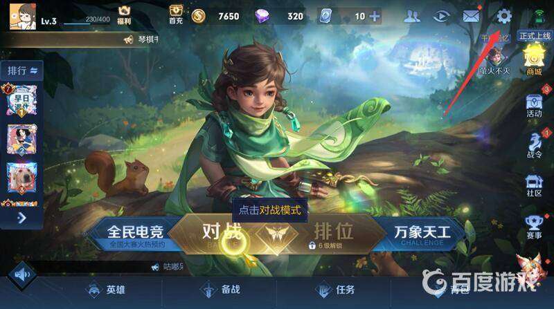 王者榮耀穩定幀數的方法就是要使得畫面質量降低,其具體操作如下: 1.打開游戲,點擊右上角的設置按鈕。