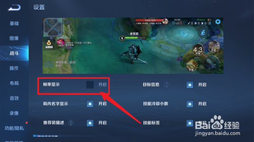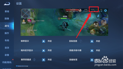2 然后打開戰斗標簽,開啟幀率顯示。