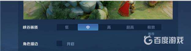 3、峽谷畫質:中(PS:開低會看不到傷害數值,不推薦),角色描邊:關閉。