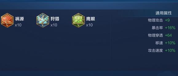 3.銘文搭配:禍源×10、狩獵×10、鷹眼×10