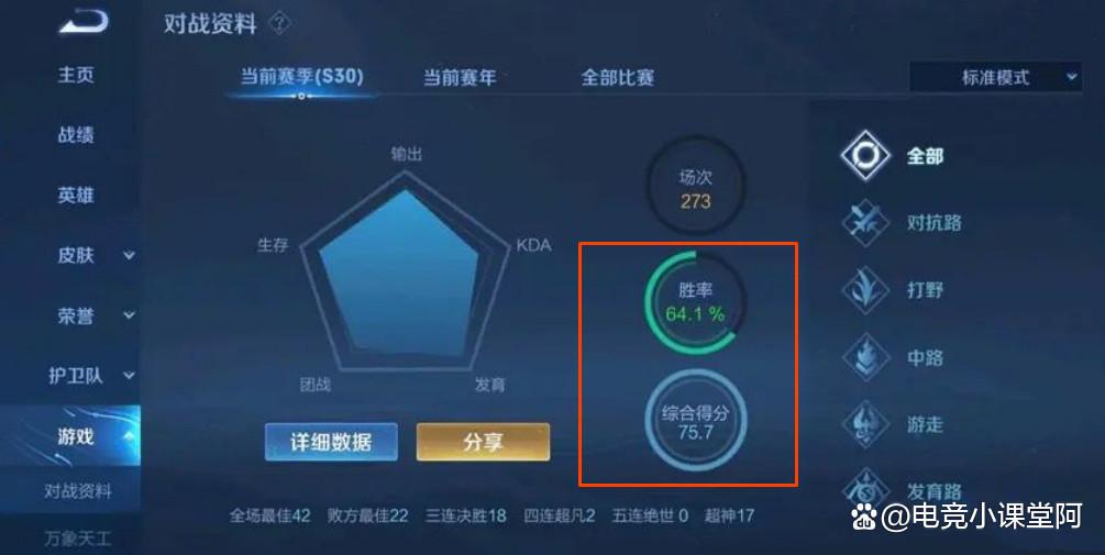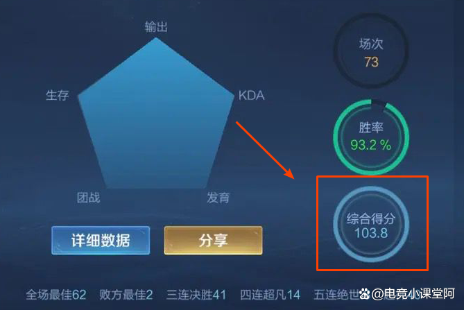 看一個玩家的王者真實水平,不同的玩家有著不同的看法,有的認為看歷史最高段位就行,有些認為看最高戰力的英雄就行,有些則認為看歷史最高巔峰分數就行,其實在課代表看來,最能代表玩家真實實力的,就是當前賽季的綜合評分,70以下不及格,90以上很難得。