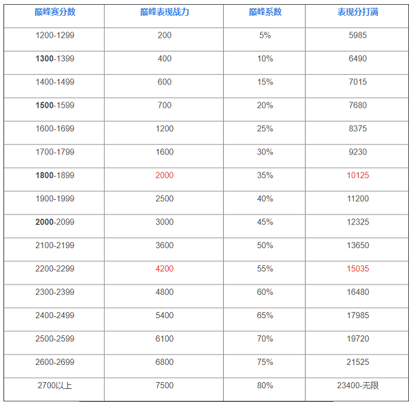 巔峰系數(shù):同樣是通過巔峰賽來獲取,開啟巔峰賽以后的初始分?jǐn)?shù)為1200分,每增加20分可以給你的全英雄增加1%的戰(zhàn)力,上不封頂。和巔峰戰(zhàn)力一樣也可以通過挑戰(zhàn)賽獲取,具體獲取規(guī)則如下