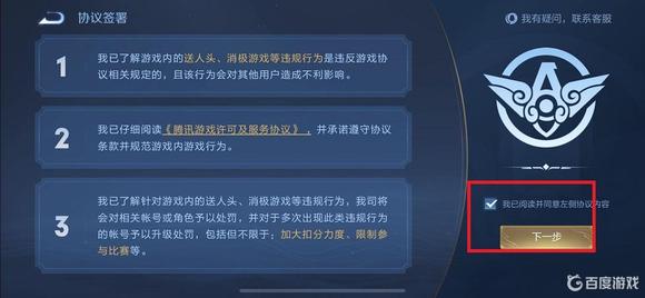 6.閱讀補給協議后,勾選右側“我已閱讀并同意左側協議內容”后點擊“下一步”。